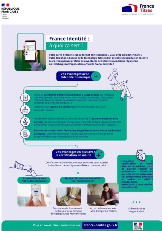 Vous avez entamé une démarche de renouvellement de carte d’identité. Lors de son retrait en mairie, il est désormais possible d’activer votre identité numérique France identité et de la faire certifier en même temps.